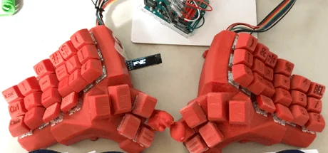 はじめは夫も、自分用のPCBやケースを作る方向で考えていました。 ところが、テスト用に空中配線を試している間に、3Dプリンタ+空中配線でも充分ではないかと思い始めたようです。 そして、最初に作った空中配線の自作キーボードで、ふつうにメインで使える代物だと分かってしまったのです。