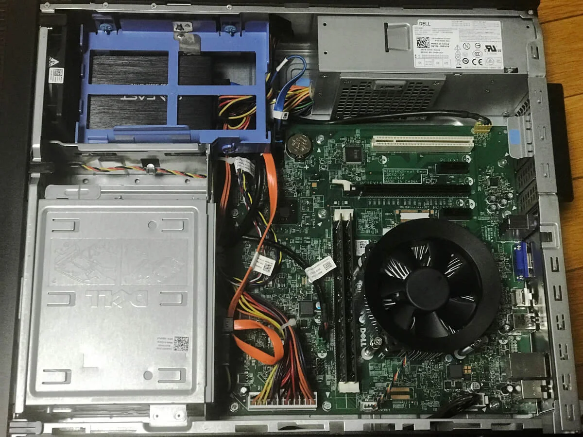 元のパソコンはDELL Vostro 3800です。 旅先で親類にパソコンを見て欲しいと頼まれたのですが、どうやら電源が壊れていたようです。 夫がHDDとメモリを取り出して、持ち帰りました。