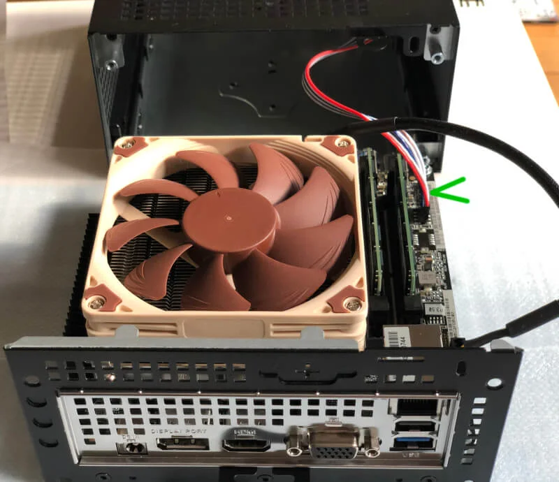 RyzenのCPUに付属のファンだと、デスクミニのケースに入り切りません。 DeskMini付属のCPUファンだと小さいので冷却機能が心もとないですね。